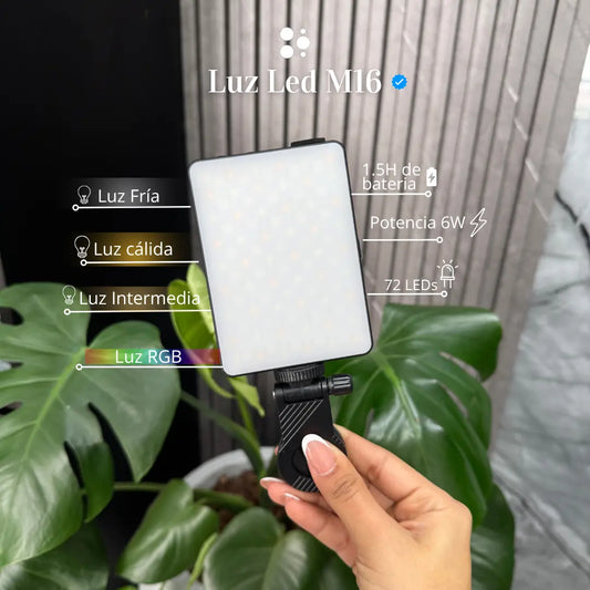 Luz Mini Portátil M16 — De tu bolsillo al escenario digital 💡📱🌐
